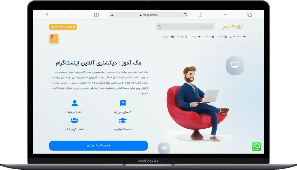 سایت آموزشی مگ آموز که یک سایت آموزشی در حوزه آموزش اینستاگرام است که کاملا رسپانسیو طراحی و پیادهسازی شده است.