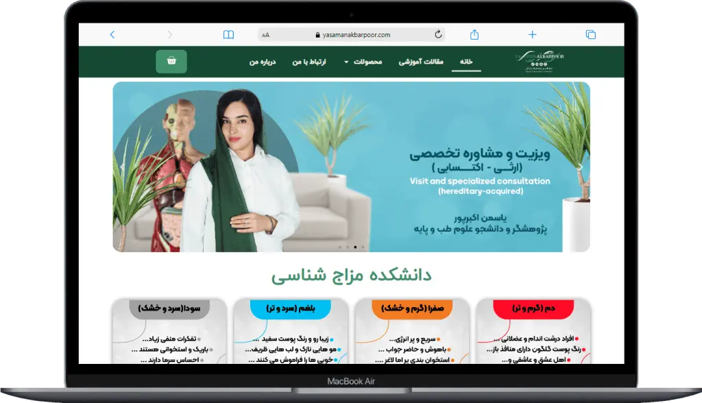 سایت پزشکی برای متخصص ژنتیک با قابلیت فروش محصولات دست ساز و نوبتدهی آنلاین که طبق UI اختصاصی مورد تایید نظر کارفرما که به صورت کاملا رسپانسیو اجرا شده است.