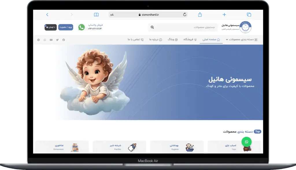 سایت حوزه فروش آنلاین محصولات حوزه مادر و کودک با طراحی مینیمال و تم رنگ متناسب با پیج اینستاگرام به صورت کاملا رسپانسیو اجرا شده است.