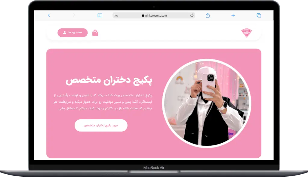 سایت بلاگری که جهت فروش دوره آموزشی رشد در اینستاگرام به صورت کاملا رسپانسیو طراحی و پیادهسازی شده است.