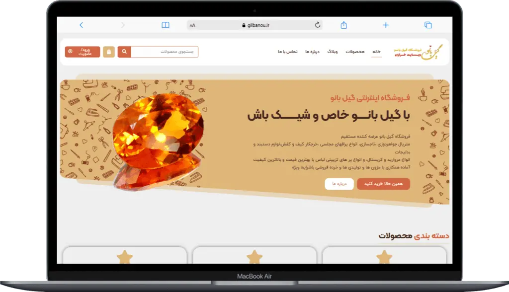 طراحی سایت فروشگاهی اختصاصی برای فروشگاه اینترنتی خرازی و هنریجات گیل بانو طبق UI اختصاصی مورد تایید نظر کارفرما که به صورت کاملا رسپانسیو اجرا شده است.
